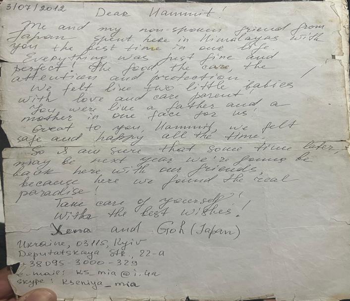 Dear Hammit, Me and my non-spoken friend from Japan spent here in Himalayas with you the best time in our life. Everything was just fine and perfect! The food, the care, the attention and protection. We felt like two little babies with love and care parent! You were like a father and a mother in one face for us. Great to you, Hammit, we felt safe and happy all the time. So is our sure that some time later, maybe next year we’re going to be back here with our friends, because here we found the real paradise! Take care of yourself! With the best wishes!
