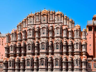 Iconic pink sandstone palace with unique lattice windows and royal history.